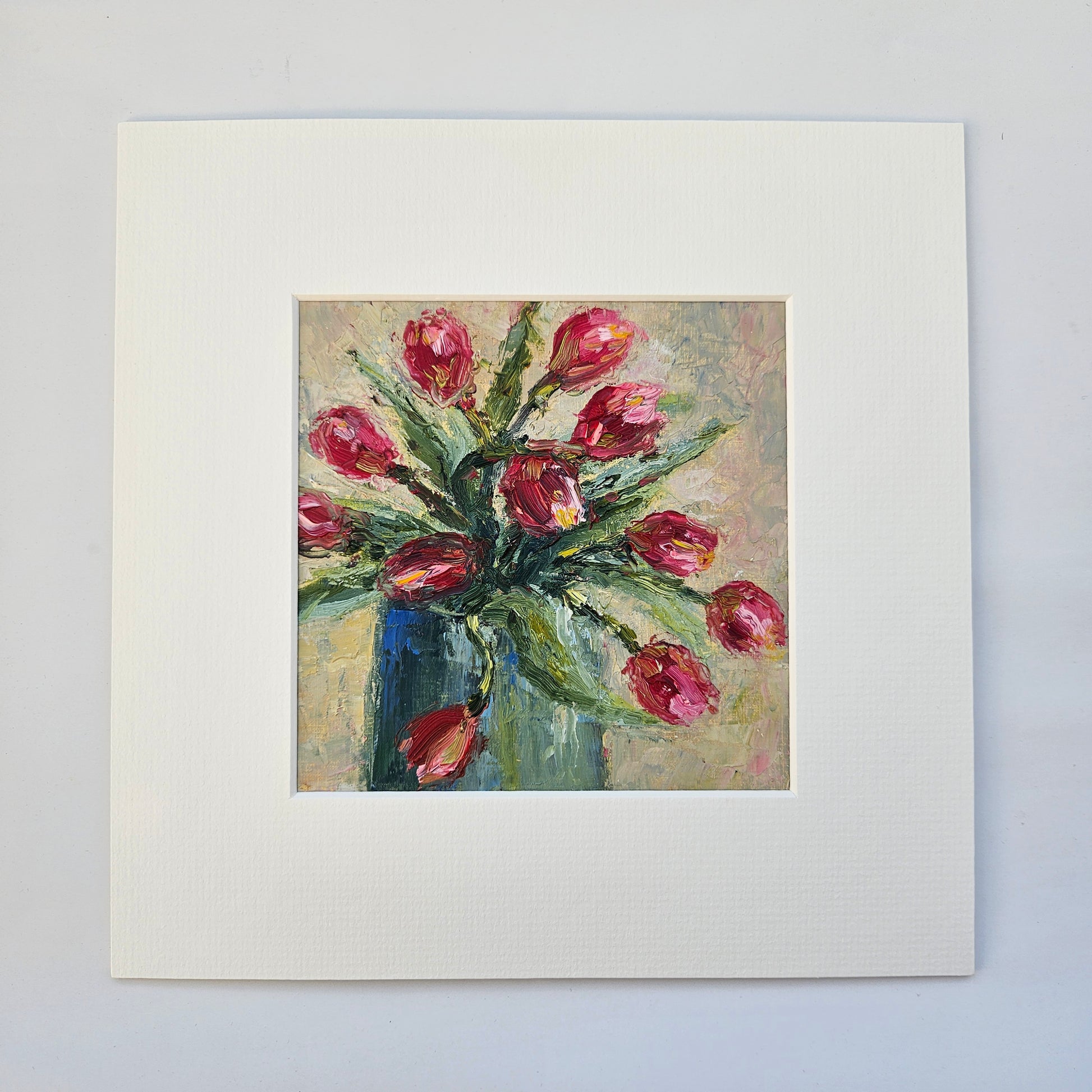 5.75 x 5.75 inches (14.5 x 14.5 cms) oil on paper, presented in a 10 x 10 inches (25 x 25 cm) white/off-white mount and ready to frame in a standard sized frame of your own choice